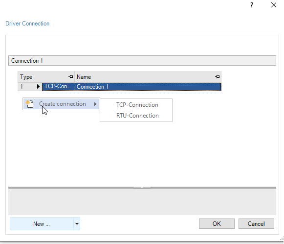 The process variables to be used in the project are created in the process variable editor. A variable either has a process connection via a communication driver or is used as an auxiliary variable (marker) within the visualisation project.