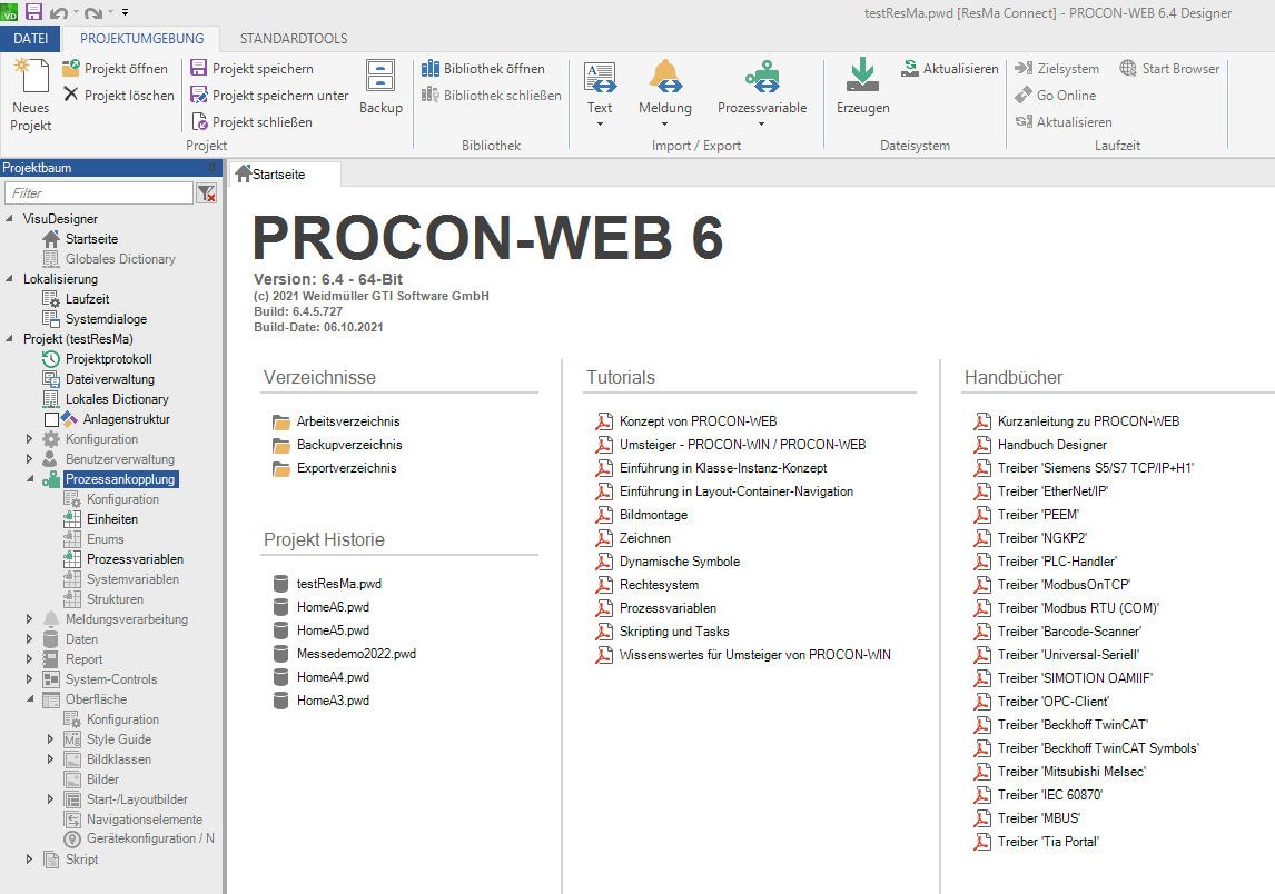 Im Projektbaum stehen nun dessen PROCON-WEB-Funktionen zur Verfügung.