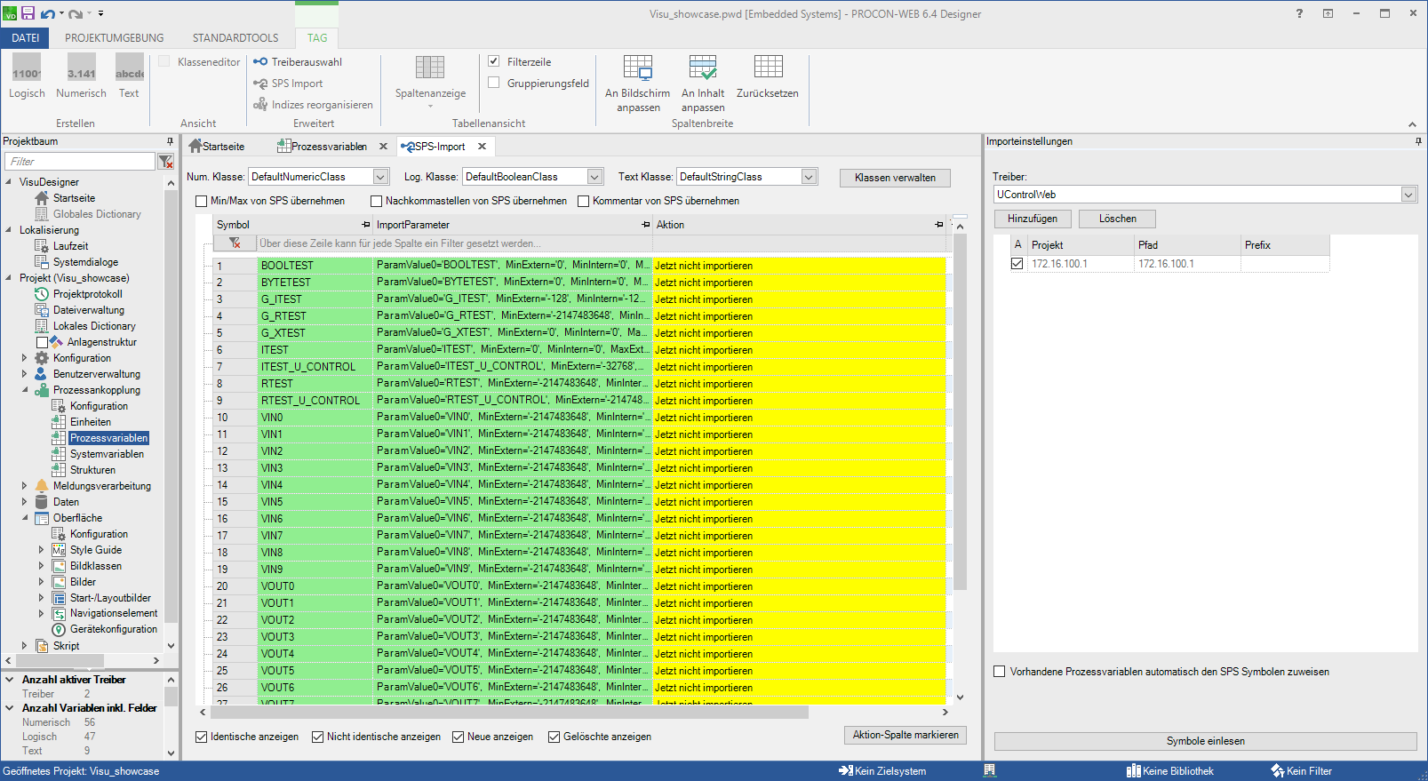 Über „Prozessvariablen“ à „SPS Import“ den Import aufrufen