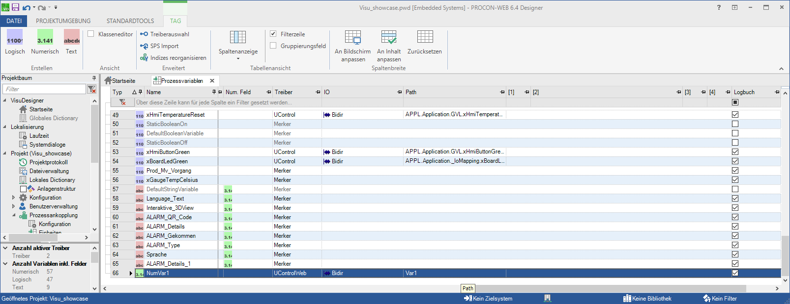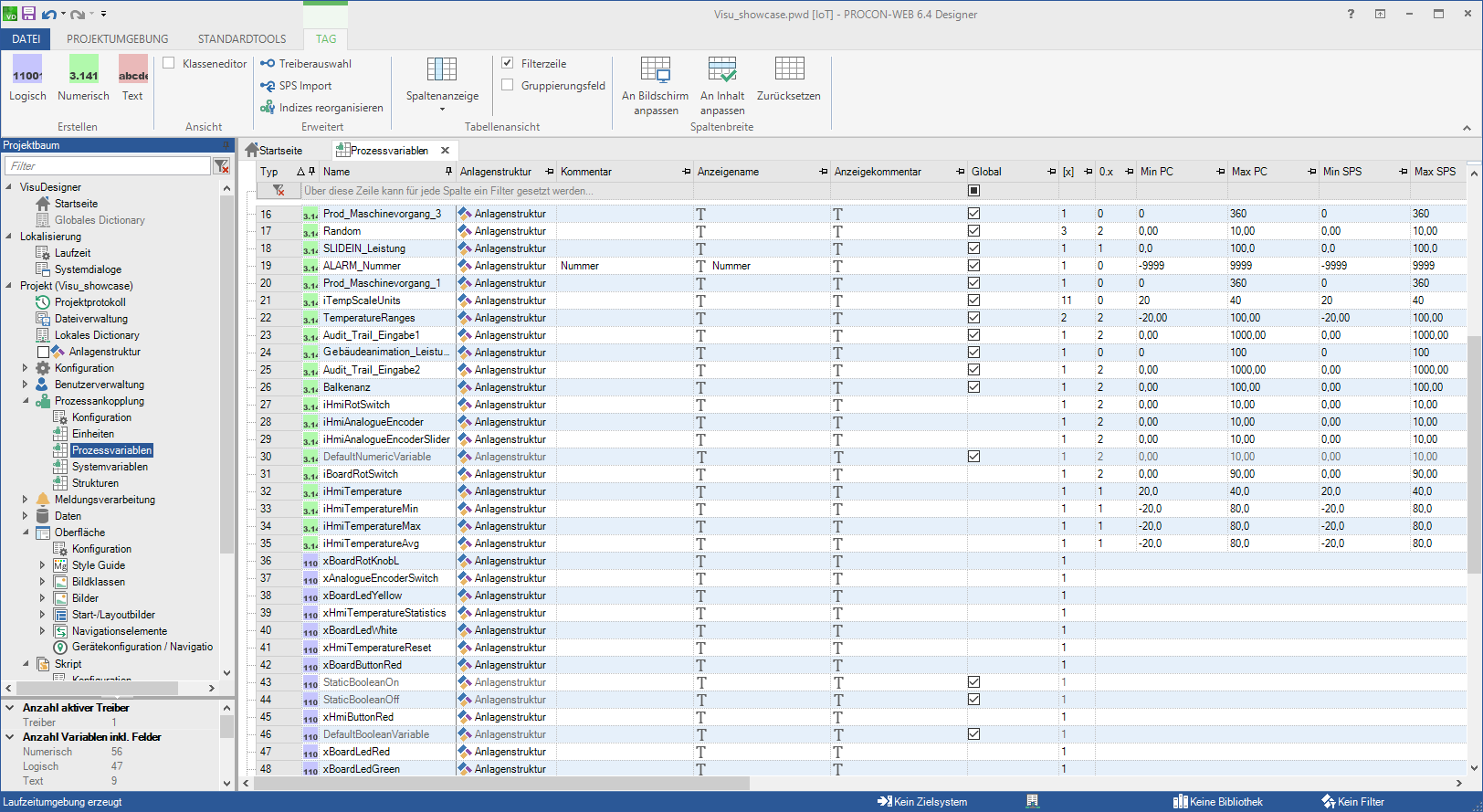 Hier können Prozessvariablen angelegt, der Kommunikationstreiber ausgewählt und konfiguriert werden.